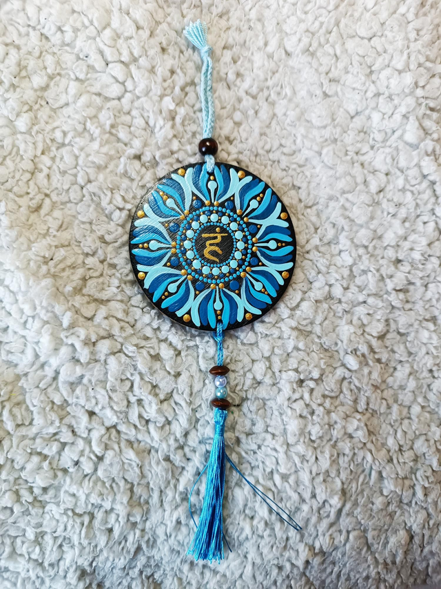 Jolie suspension murale en bois représentant le chakra de la gorge (vishuddha)