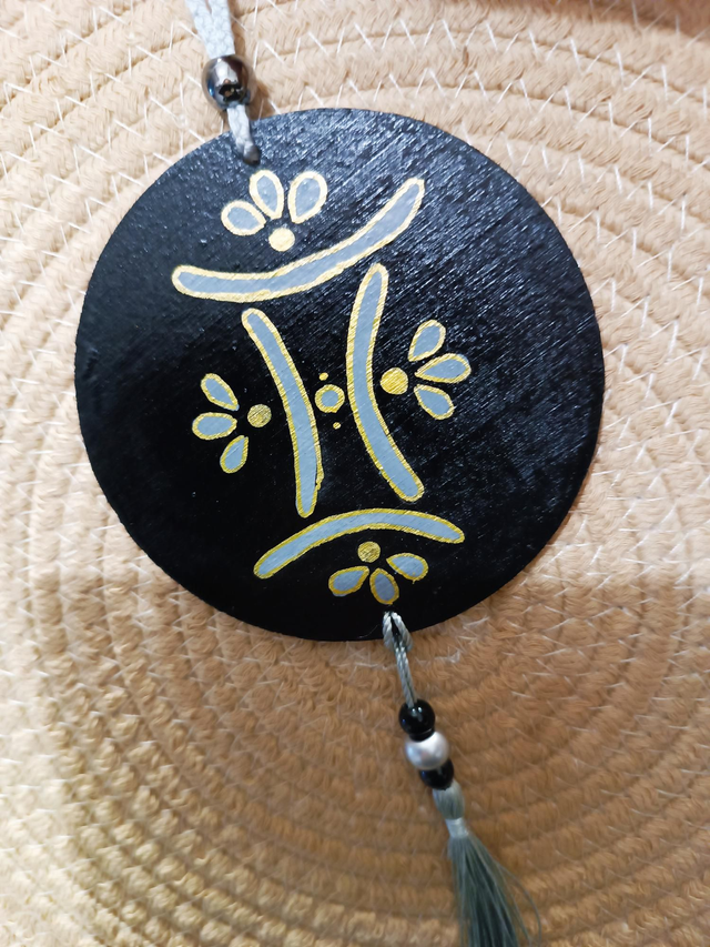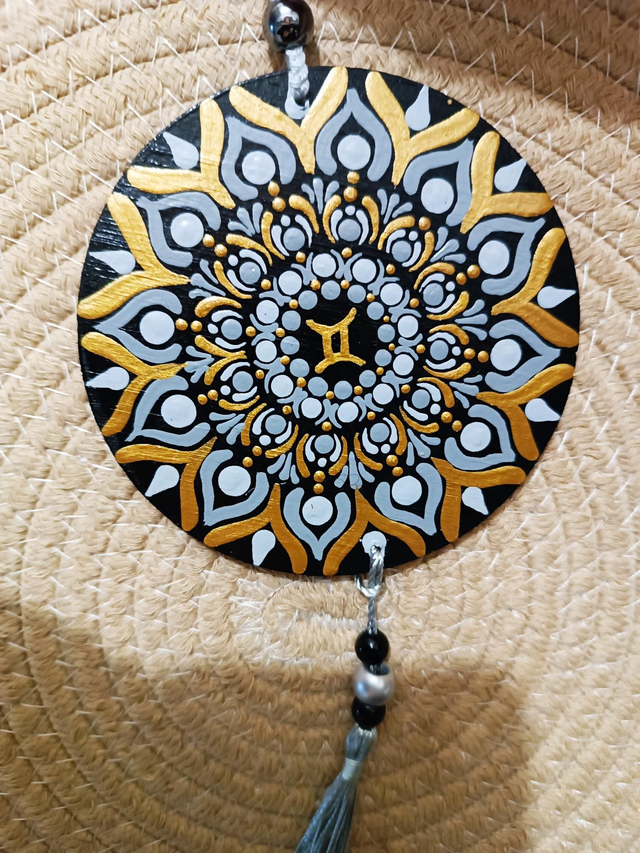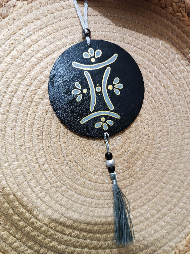 Jolie suspension murale sur le thème des signes astro "Gémeaux" , agrémenter de perles et de pompon .