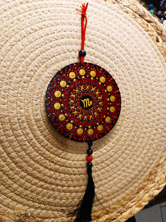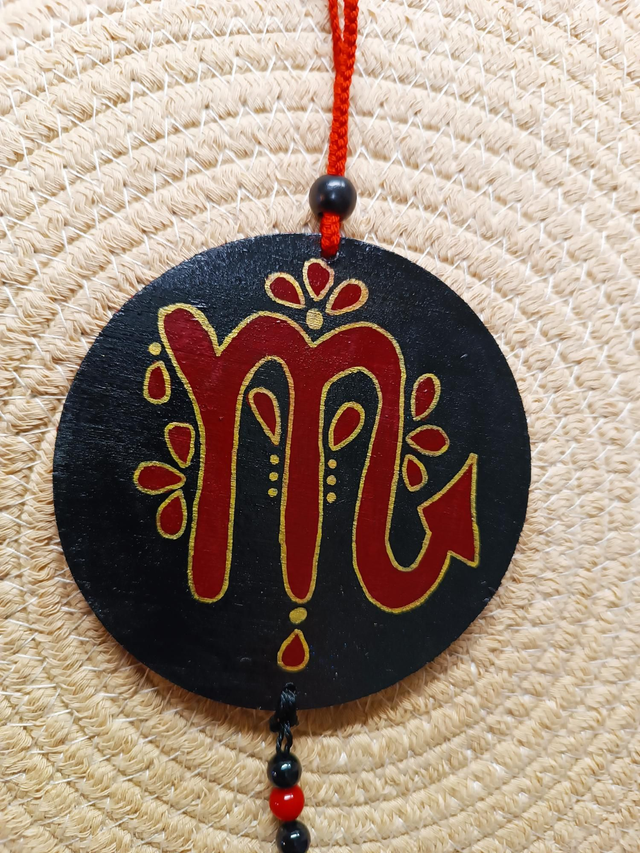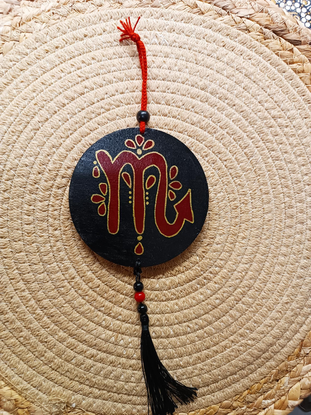 Jolie suspension murale sur le thème des signes astro "scorpion" , agrémenter de perles et de pompon .